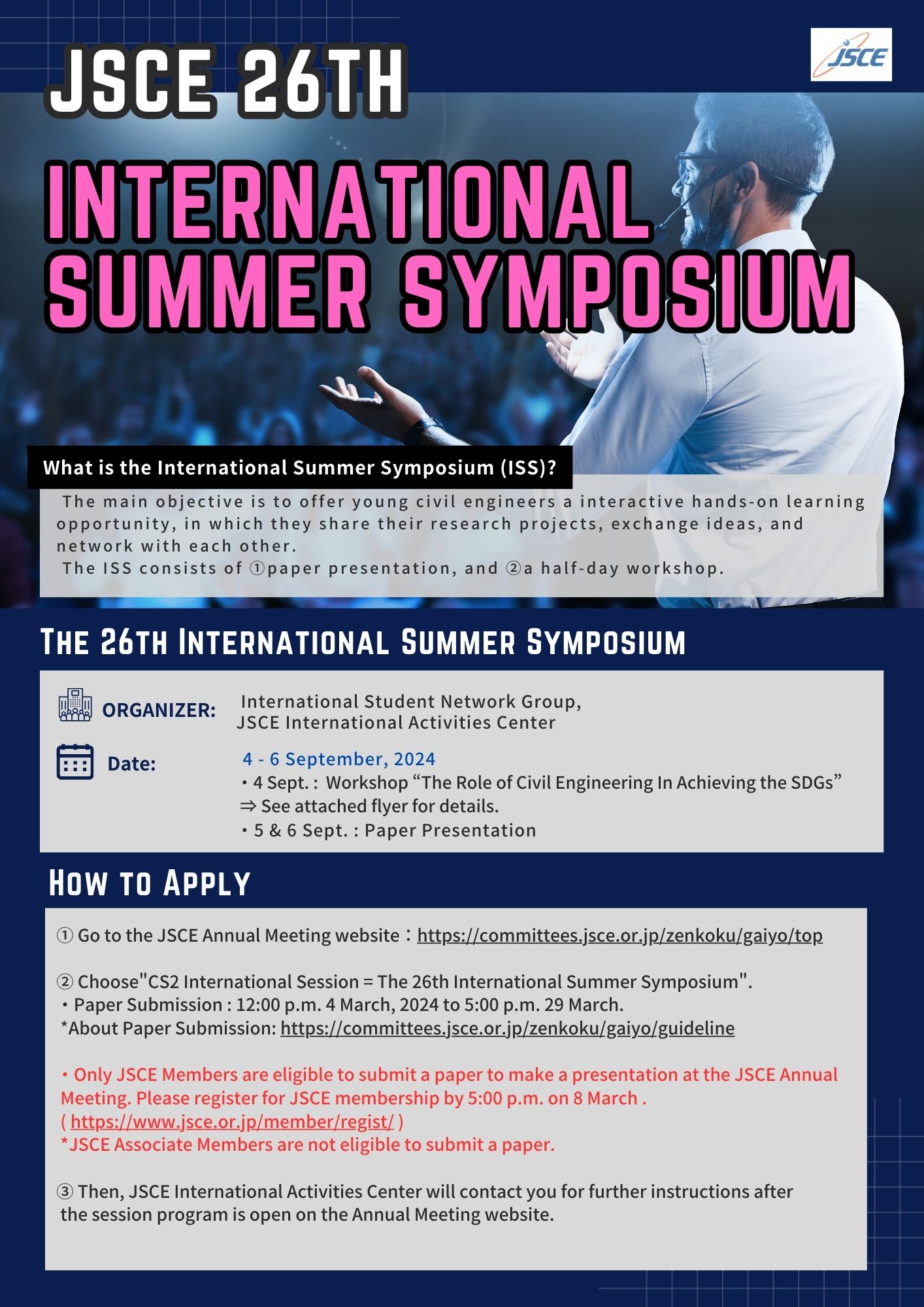 The 26th ISS will be held on 4 to 6 September 2024 as part of Common Sessions of 2024 JSCE Annual Meeting.