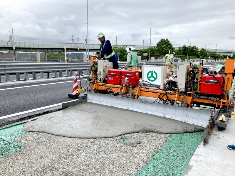 In order to address this problem, we have developed the new methodology consisting of the new road slab replacement machine and the slob jointing system. This development improves the workability of construction, shortens the construction period and avoid traffic restrictions during replacement works in weekends.