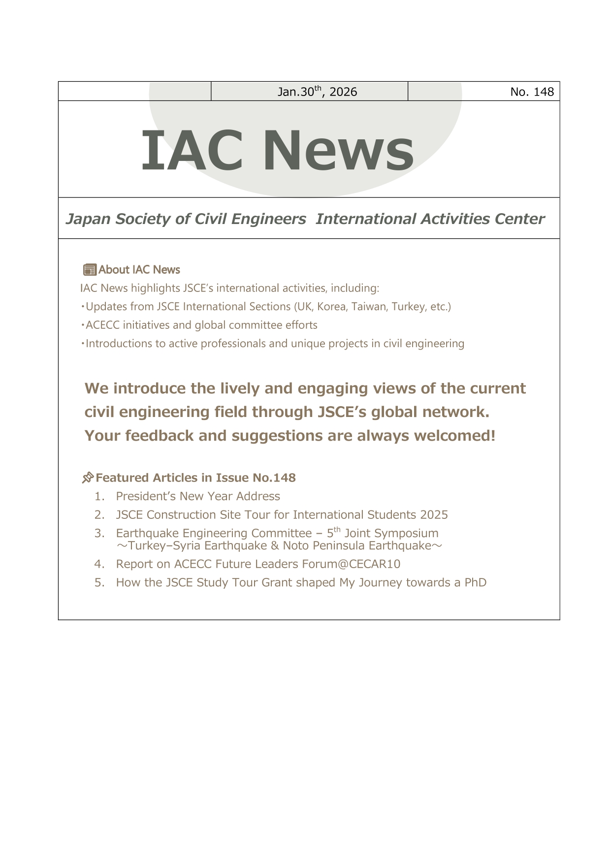 Japan Society of Civil Engineers International Activities Center January 30, 2026 IAC News No.148